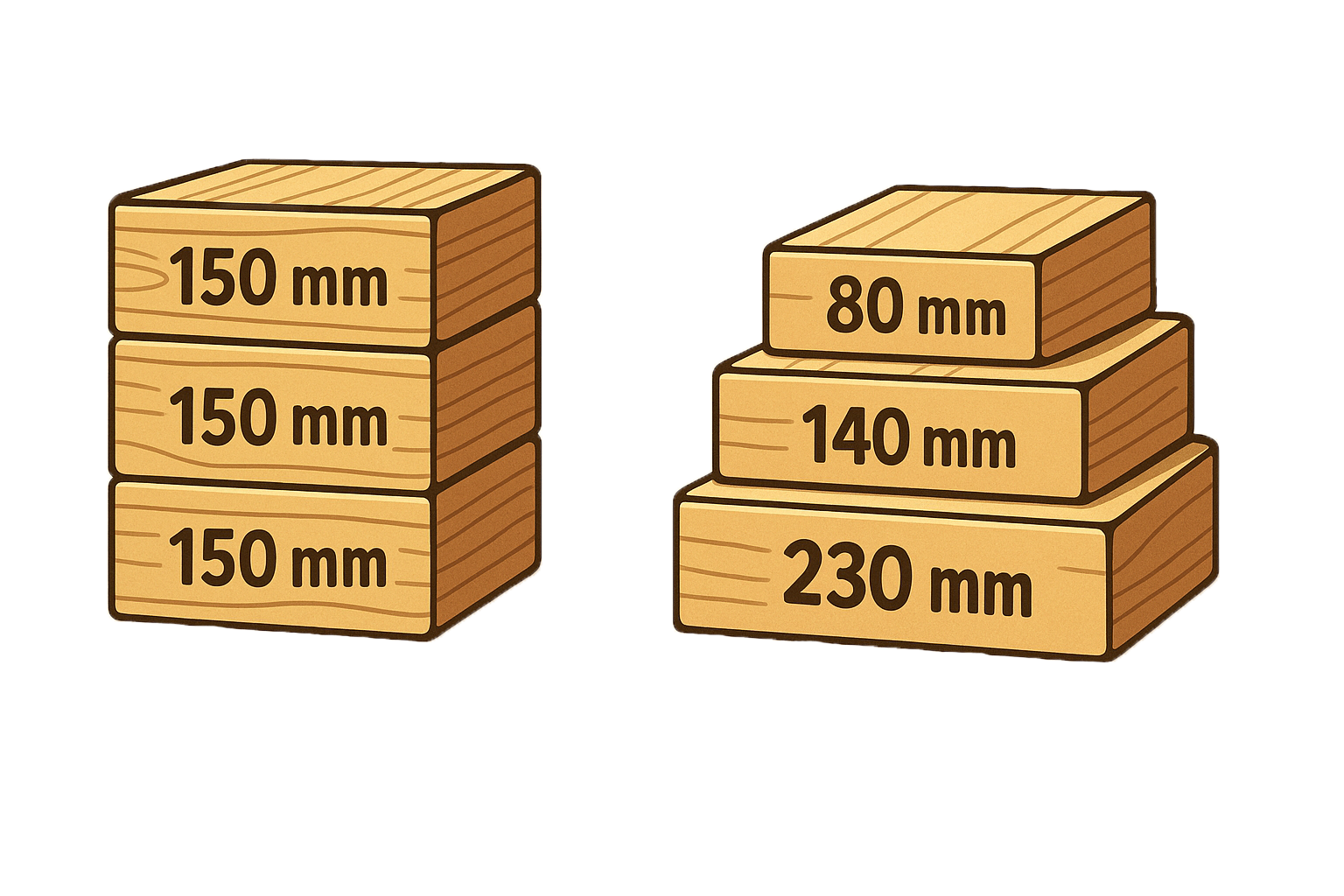 Stel je bijvoorbeeld voor dat je een paneeltje nodig hebt van 450 mm breed. Normaal zou je dan 3 planken van 150 mm breed bestellen. In plaats daarvan leveren wij voor dezelfde totale breedte 3 planken met verschillende breedtes, zodat je nog steeds goed uitkomt op 450mm totaal, maar wij het hout efficiënter kunnen indelen.